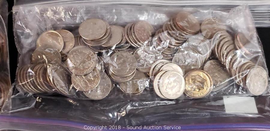 This auction consists of a large collection of various coins, currency American & Foreign. includes: Morgan Silver Dollars, Kennedy Half Dollars, WA Quarters, Roosevelt & Mercury Dimes, Peace Dollars, Silver Canadian Coins & much more!
