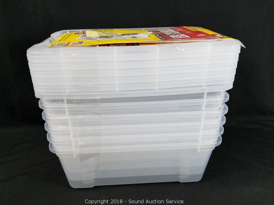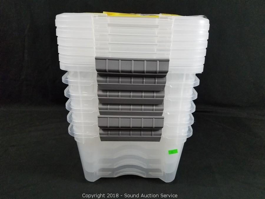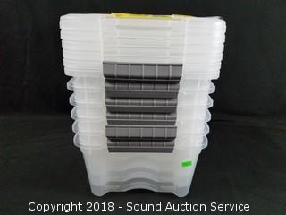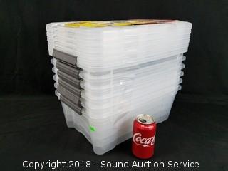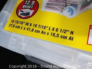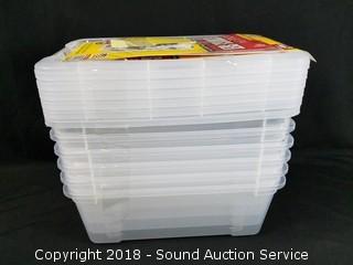 Lot #0053: 6pk 12.9QT Clear Plastic Storage Totes w/Lids