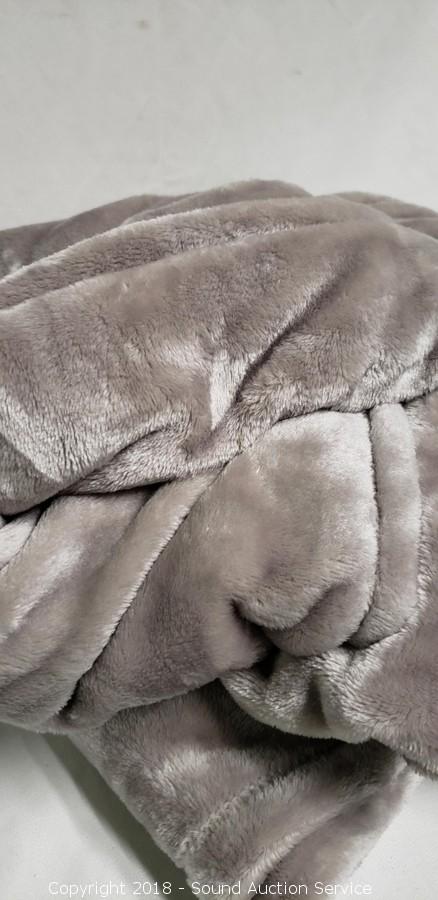 Lot #0216: Charisma Plush Twin Blanket - Grey/Taupe