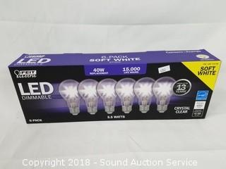 Lot #0078: 6pk Feit LED Dimmable Crystal Clear Light Bulbs