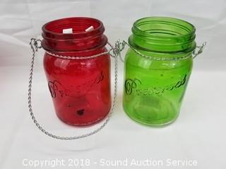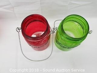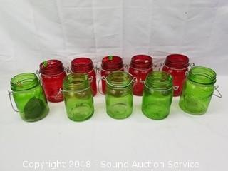 Lot #0192: 10 Red & Green Flash Glass Jars w/Handles