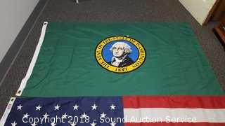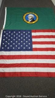 Lot #0228: 3ft x 5ft Washington State & American Flags