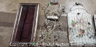 Includes: 2 bird cages (the back of one has come free), woman form, and mirror. Approx. 23" H, 12" W.