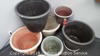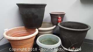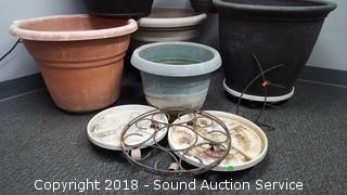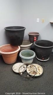 Lot #0010: 6 Heavy Duty Plastic Planters & 4 Plant Carts