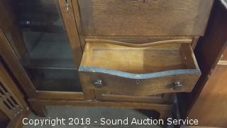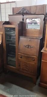 Lot #0128: Antique Amish Secretary Desk Bookcase w/Mirror
