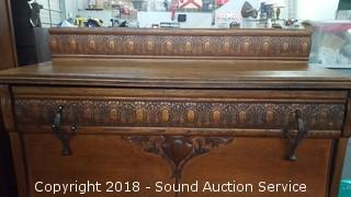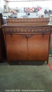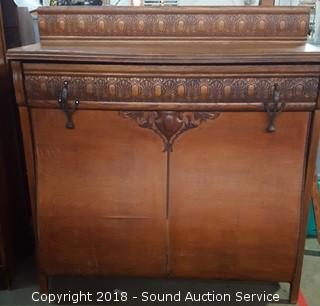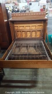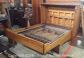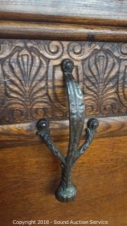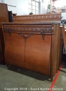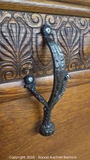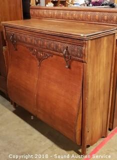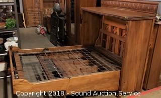 Lot #0138: Antique Ornate Oak Twin Murphy Bed