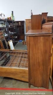 This auction consists of some fantastic antiques and collectibles! Includes: Incredible 1886 Murphy Bed, White Gold Diamond & Emerald Ring w/Appraisal, Roll Top Desk, Amish Secretary Hutch, Large Old Wood Propeller, Primitive Wood Toboggan, Hunting Knives, Thomasville King Headboard w/ Cabinets, Old Hickory Acoustic Guitar, Records, RCA Victor Hand Crank Talking Machine (Works), Armoire, Vanity, Various Jewelry, Vintage Cameras, Noritake Dish Set, Danbury Mint Pewter Planes & Cars Collectibles & Much More!