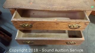 Has 2 drawers and lower cabinet. Approx. 28" H, 31" W, 16-1/2" D.
