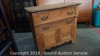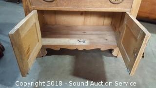 Lot #0149: Antique Solid Oak Commode Wash Station Cabinet
