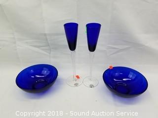 Lot #0181: Collection of Cobalt Blue Glassware & Delft