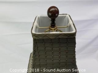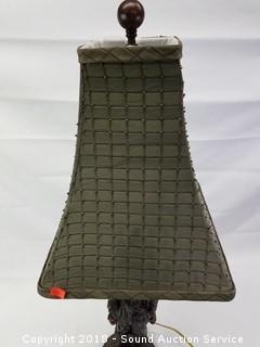 Golf club is missing the shaft. Approx. 31" H, 10-1/2" diameter shade.