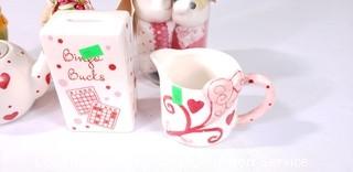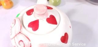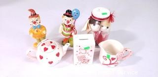 Lot #0325: Heart Theme Teapot, Creamer & Clown Figures