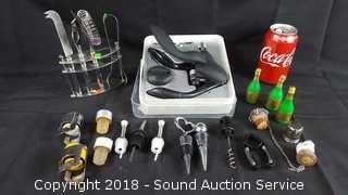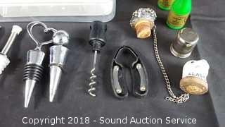 Lot #0233: Houdini Corkscrew Set & Bottle Stoppers & Spouts