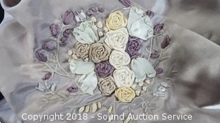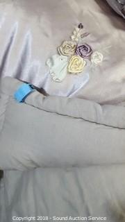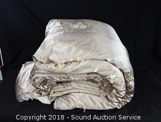 Lot #0030: King Silky Elegant Floral Comforter & Bed Skirt