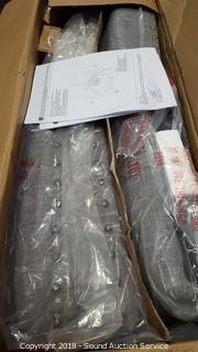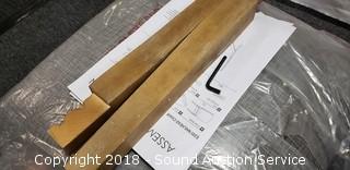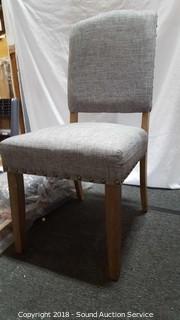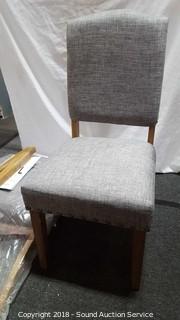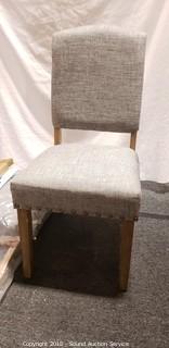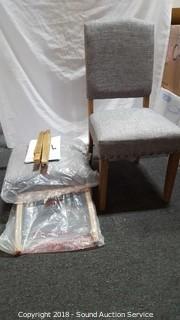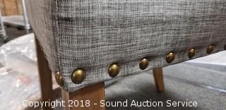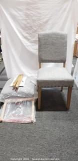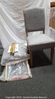 Comes in original packaging, complete, like new condition with sealed hardware. You get 2 chairs, grey linen, nail head trim. Assembly required.