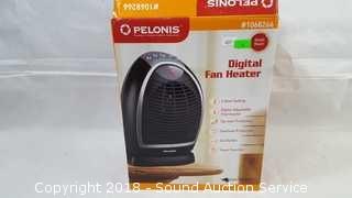 Comes in original box. Works! 2 heat settings, digital adjustable thermostat. Model HF-0063.