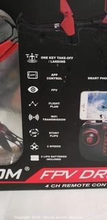 Comes in original box. App control, FPV, wi-fi transmission, stunt flips, 2 speeds. Model D1650WH.