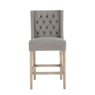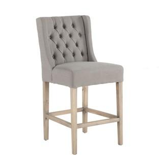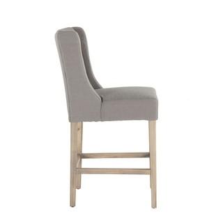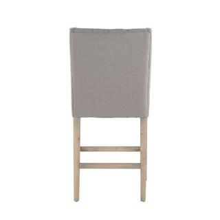 Some scuffing on the legs. Oxford Warm Grey Linen Upholstery; Natural Finish Wooden Legs; Button-Tufted Back; Framed Side Panels; Solid Hardwood Frame. 24 inches wide x 20 inches deep x 39 inches high.