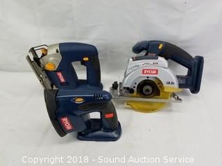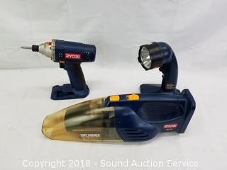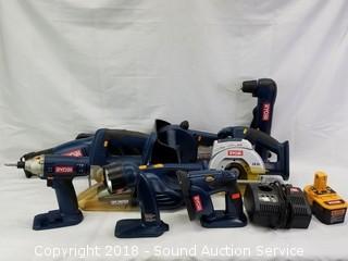 Lot #0053: 10pc Ryobi 18v Cordless Power Tools Set - Works