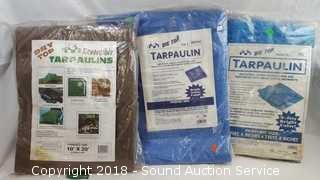 Includes: Brown 10ft x 20ft, Blue 11ft 4" x 11ft 4", and Blue 5ft 6" x 7ft 6".