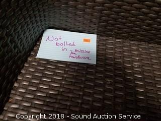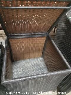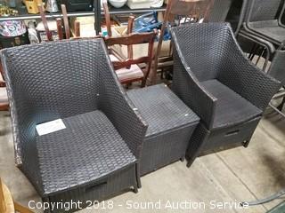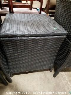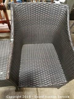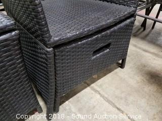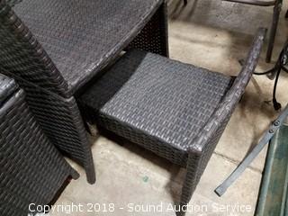 Lot #0055: 5pc Ratan Patio Set - Chairs, Ottomans & Table