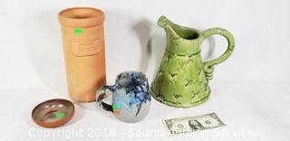 Lot #0340: Art Pottery Pitcher, Mug & Wine Brick