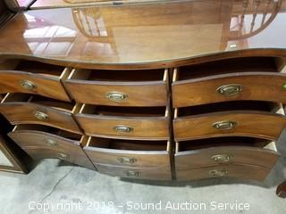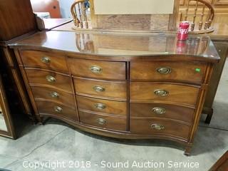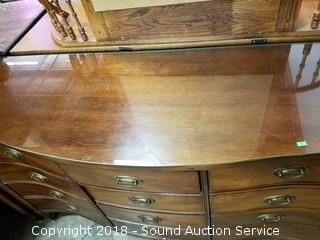Lot #0009: Dixie Furniture 9-Drawer Lowboy Dresser w/Mirror