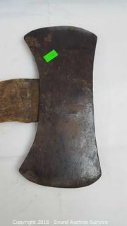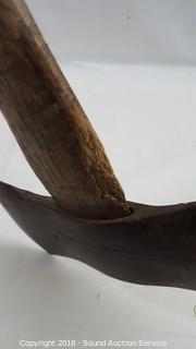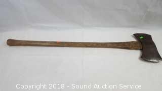 Does have a name on it, cannot make it out. Approx. 36" long, 9-1/2" head.