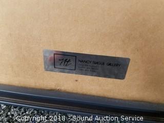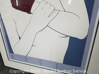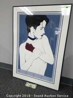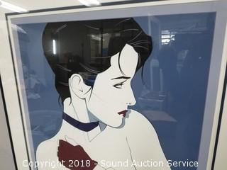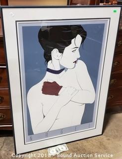 Nice Aluminum frame, matted with glass. Approx. 28" x 40-1/2". From the Nancy Teague Gallery, Seattle. Patrick Nagel was an American artist. He created popular illustrations on board, paper, and canvas, most of which emphasize the female form in a distinctive style descended from Art Deco.