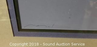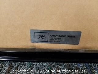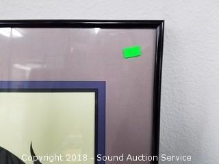 Nice Aluminum frame, matted with glass. Approx. 30-1/4" x 39-1/2". From the Nancy Teague Gallery, Seattle. Patrick Nagel was an American artist. He created popular illustrations on board, paper, and canvas, most of which emphasize the female form in a distinctive style descended from Art Deco.
