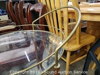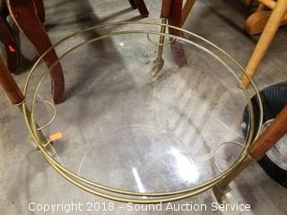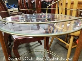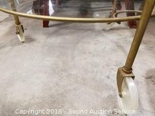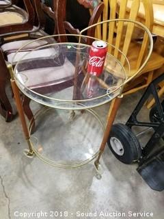 Lot #0051: Vtg. Brass & Glass 2-Tier Round Tea Cart