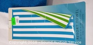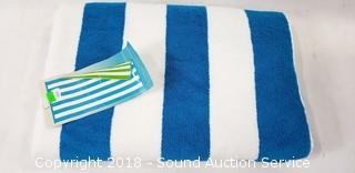 Lot #0388: Charisma Blue/White Cotton Resort Towel 35" x 70"