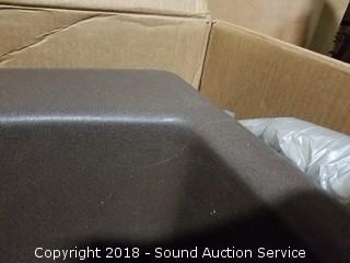 Mocha color. Comes in original box with instruction manual. Has some minor scuff marks where the box rubbed, don't believe it has ever been used. Approx. 33" x 22".