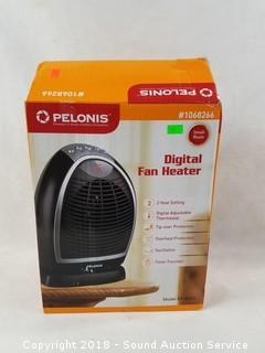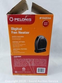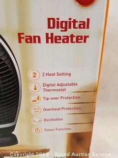 Comes in original box. For small room. 2 heat settings, digital thermostat, oscillation, tip over protection, timer. Model HF-0063.