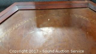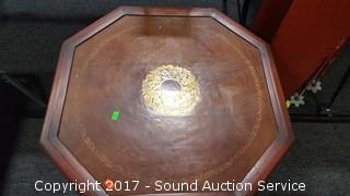 Lot #0161: Antique 8 Sided Leather Mahogany Top Side Table