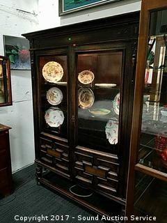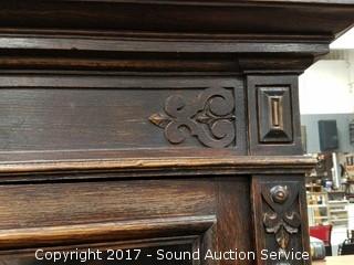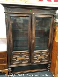 Lot #0002: Antique Carved Asian Block Style China Hutch