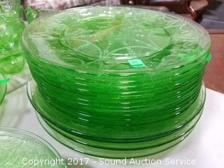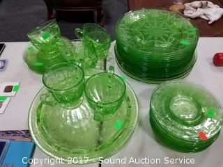 Lot #0092: Huge Lot of Huge Cameo Ballerina Depression Vaseline Glass