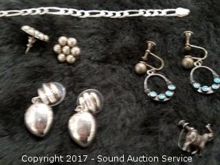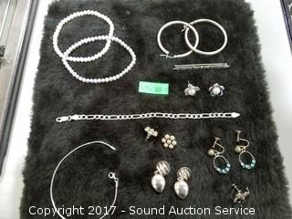 Lot #0100: Lot of Vintage Sterling Silver Jewelry & Pearl Bracelets