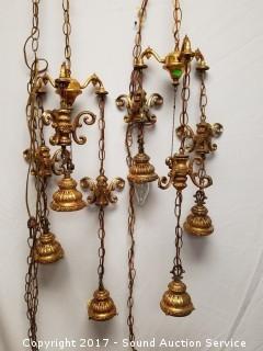 Lot #0082: Pair of Vintage 3 Tier Swag Pot Metal Hanging Lamps