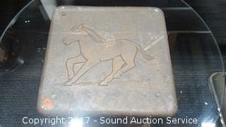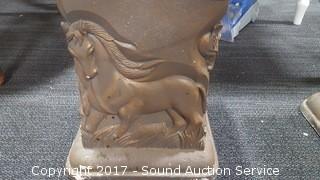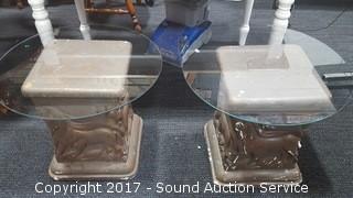 Lot #0131: Pair of Vintage Chalk Horse Embossed Side Tables with Glass Tops.