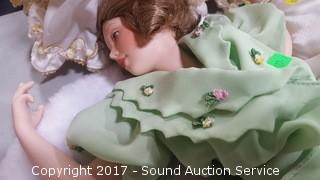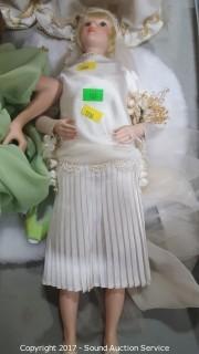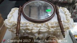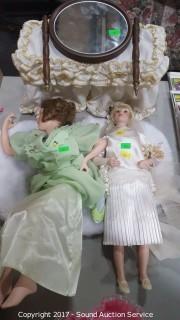Lot #0107: Pair of Vintage Porcelain Dolls & Mirrored Dresser