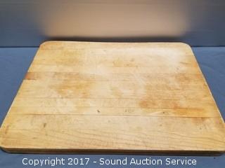 Cutting board is Approx. 20" x 15". Cutting Board has a burn mark on one side.