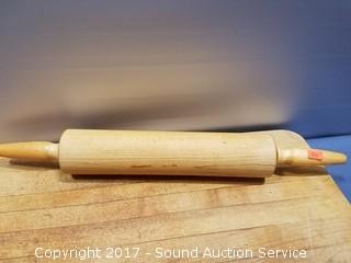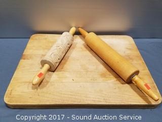 Lot #0022: Wood Cutting Board, Rolling Pin & Pattern Rolling Pin