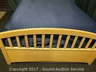 Lot #0015: Full Size Maple Bed W/ Comforter & Pillows