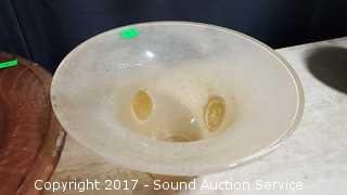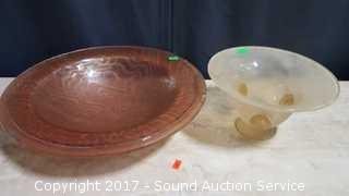 One looks to be signed Kram - Approx. 5-1/4" tall 9" diameter Larger one is chipped - Approx. 15" diameter 3-1/2" tall