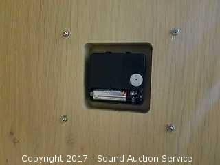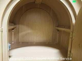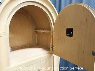 Also has upper cabinet behind the clock. Approx. 71.5" tall, 23 1/4" wide, 17 3/8" deep. Dovetail construction. 13" diameter clock.
