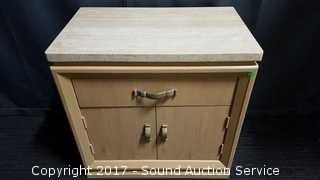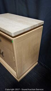 Lot #0012: Thomasville Oak Whitewash Marble Top Night Stand
