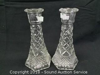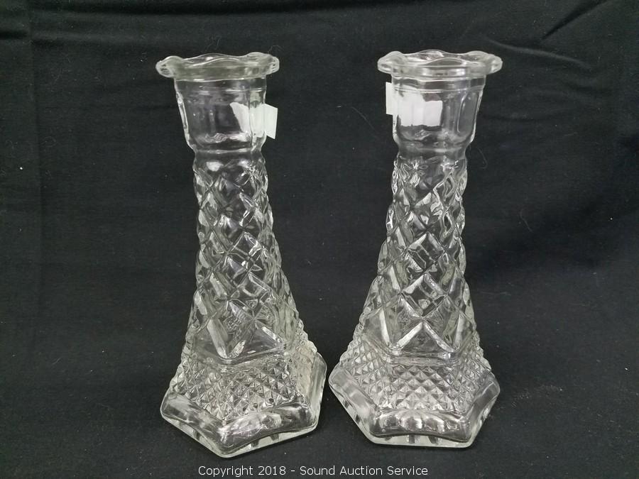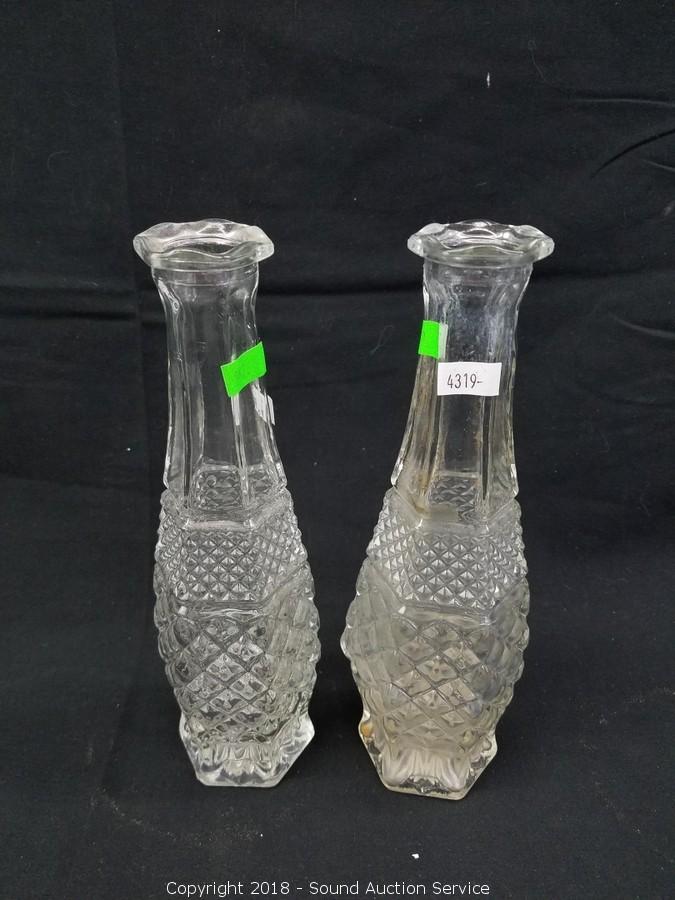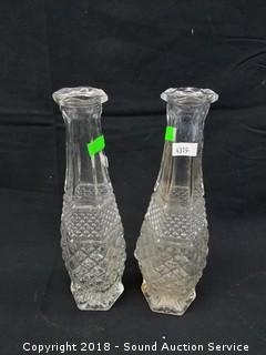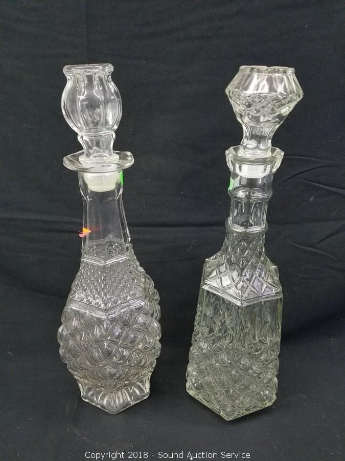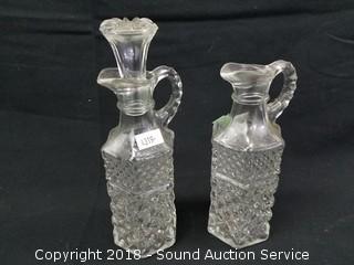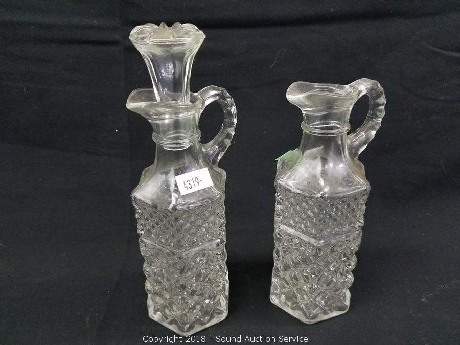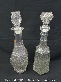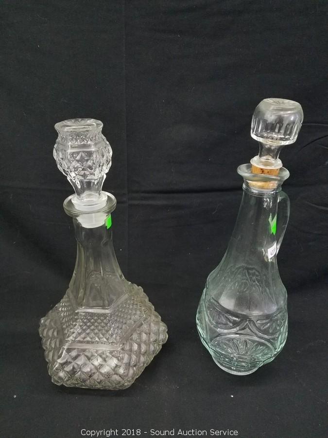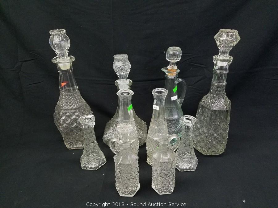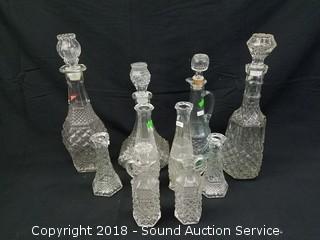 Includes: Cruets (one is missing the stopper), 4 decanters (12" to 14" H), and vases (6" to 9" H). Do not notice any chips or cracks.