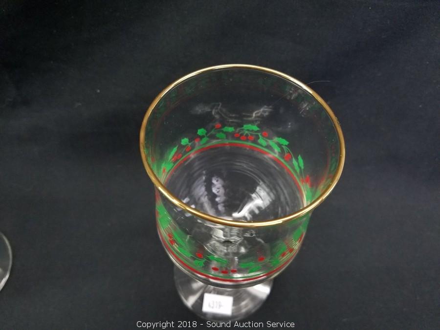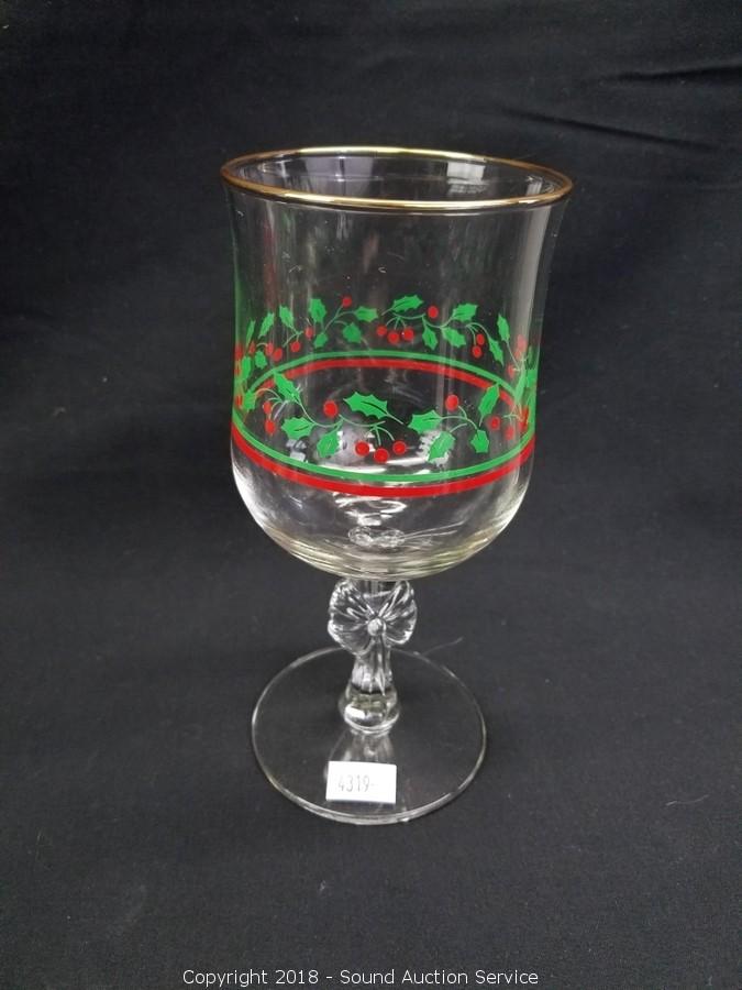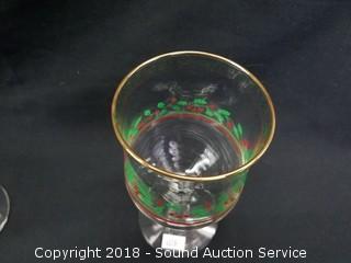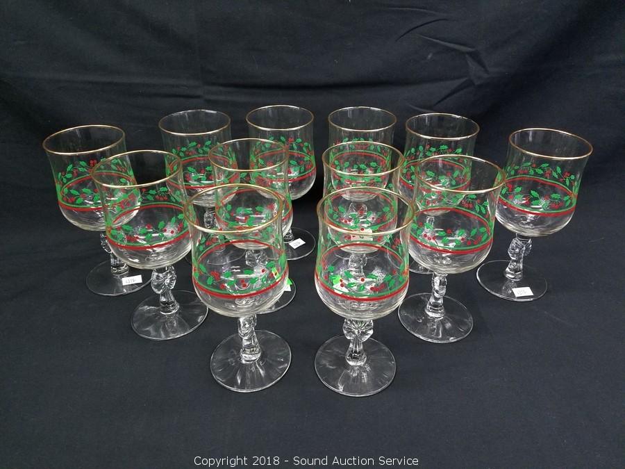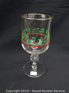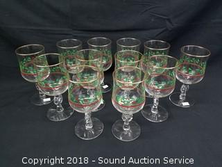 Lot #0281: 12 Gold Rim Holly Print Holiday Wine Glasses