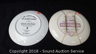 Includes: 1-3 of America Has a Heart Series by Veletta, and 4th Edition Country Series by The B&J Company, comes with plate hanger. Approx. 8-1/2" diameter.